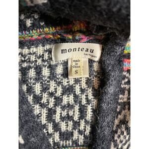 Monteau Nordic Boho Hooded Cardigan Small | Cozy Lodgecore Sweater Coat Cabin