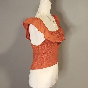 Monteau Orange Smocked Ruffled On or Off Shoulder Crop Top - Size XL