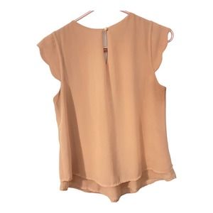 Gorgeous flowy formal blouse. Featuring scallop flutter sleeves. Pleated front. Keyhole in the front and the back. Peach / Nude color.
