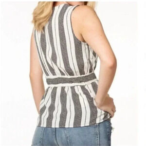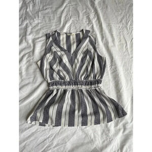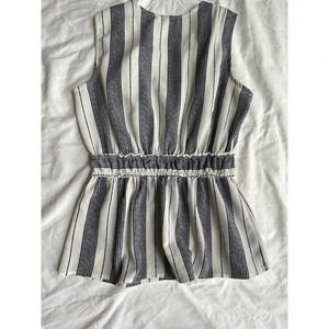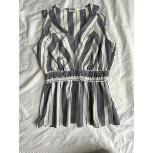 Monteau Peplum Sleeveless Top Size Medium White And Blue