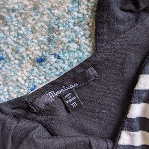 Fun date night Monteau Peplum top. In black and white stripes with a strappy back. Very stretchy cotton fabric. Size medium