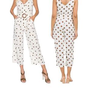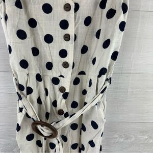 Monteau Polka Dot Tank Wide Leg Belted Linen Blend Jumpsuit