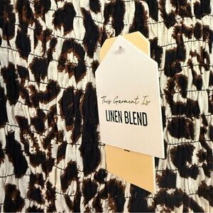 Monteau Puff Sleeve Crop Smocked Top Leopard Print Linen Blend M Beachy Baddie💕