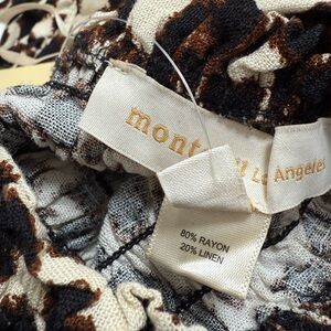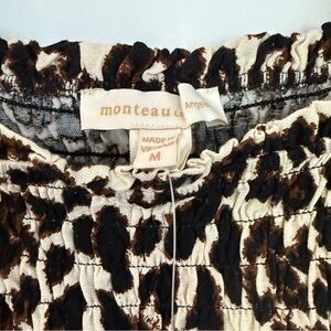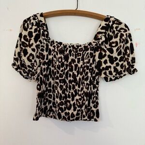 Monteau Puff Sleeve Crop Smocked Top Leopard Print Linen Blend M Beachy Baddie