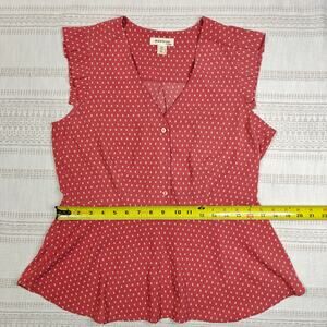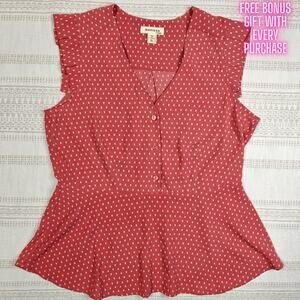 Monteau Red Peplum Ruffle Sleeve Blouse Top Women’s Size XL NEW Flattering Fit