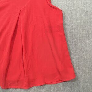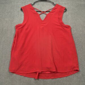 Monteau Red Sleeveless V-Neck Top Blouse Crisscross Back Detail Womens Size M