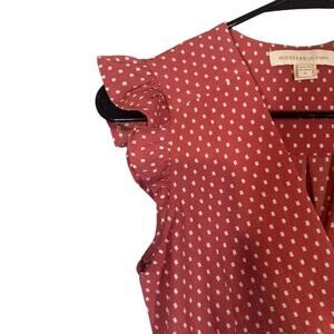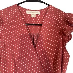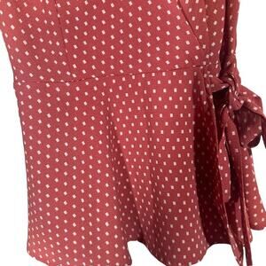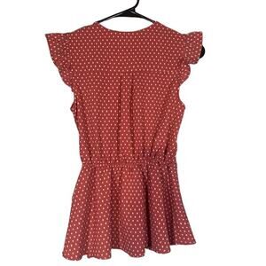 Monteau Red & White Polka Dot Flutter Sleeve Faux Wrap Peplum Blouse Women Sz S