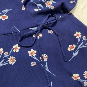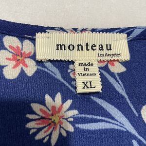 Monteau Royal Blue Spring FloralV Neck Tie Side Blouse Size XL