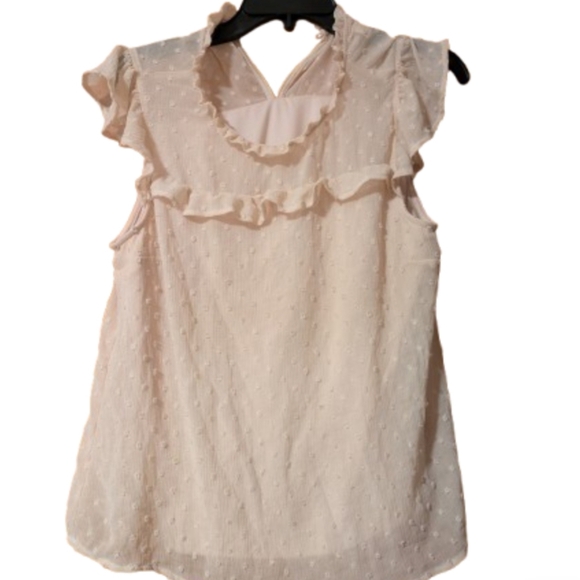 Chic blouse with ruffle accents. Textured fabric adds elegance. Perfect for versatile styling.