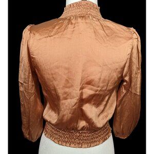 Elevate your style with this Monteau rust crop top, featuring long sleeves and a poufy ruffle design. Perfect for a chic, trendy look.