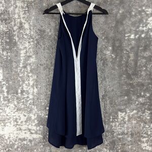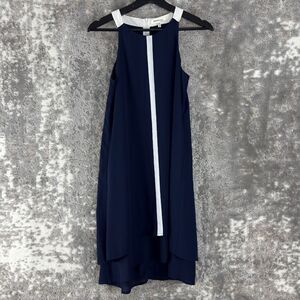 Monteau Size XS Sleeveless A Line Knee Length Dress Navy Zip Round Neck Casual