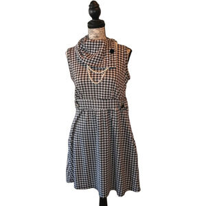 Monteau Sleeveless Cowl Neck Houndstooth Dress Black White Medium Posh Style