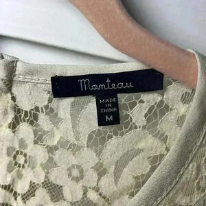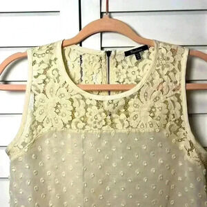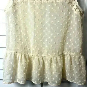 Monteau Sleeveless Lace Swiss Dot Ruffle Top Size Medium Cream
