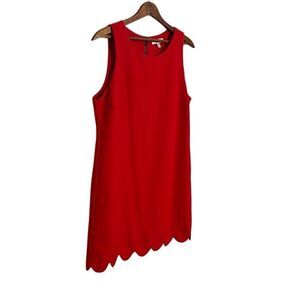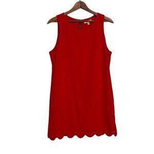 Monteau Sleeveless Crew Neck Lined Scalloped Hem Mini Sheath Dress Red Large