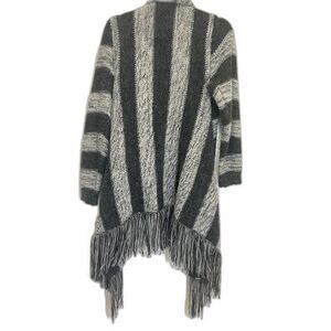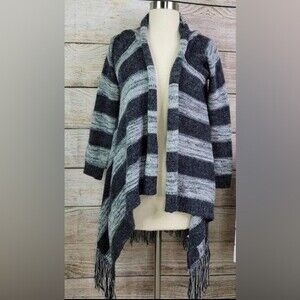 Monteau - Striped Fringe Wrap Open Boho Cardigan - size MEDIUM