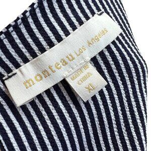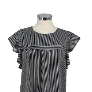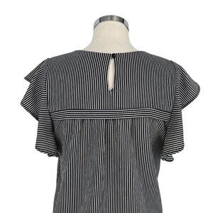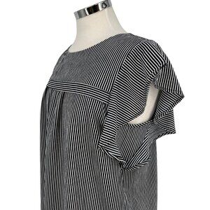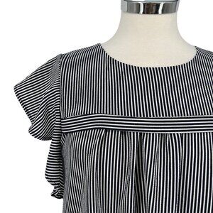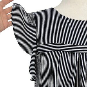 Monteau Striped Ruffle Sleeve Blouse Navy Blue White Size XL