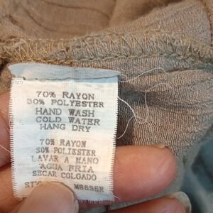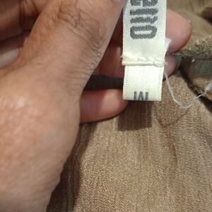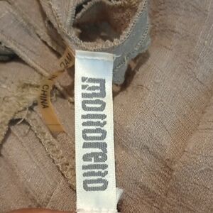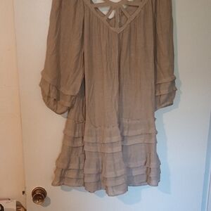 This casual sundress by Monteau showcases a tan hue with a scoop neckline and 3/4 bishop sleeves. The ruched and tiered design adds texture and movement, making it a stylish choice for relaxed outings. casual business date night preowned
