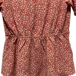 Monteau blouse, floral wrap top, Orange blouse, peplum top, women’s medium blouse, boho chic, feminine blouse, short sleeve floral top, casual blouse, spring outfit.