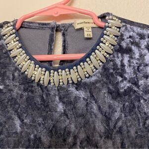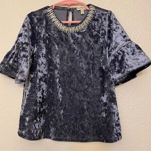 Monteau Velvet Velour Embellished Beaded slate Blue Bell Sleeve Top blouse-6X