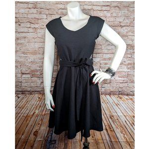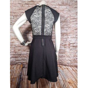 Monteau Womens A-Line Fit and Flare Black Dress. Lace Inserts details on the back and sides of the dress and Exposed Back Zipper. Matching removable belt. Women's Size Medium. New with tag, never worn and without defects. The mannequin in the photo is a size 2 so the dress fits a little loosely. Fabric has some stretch.