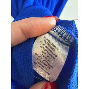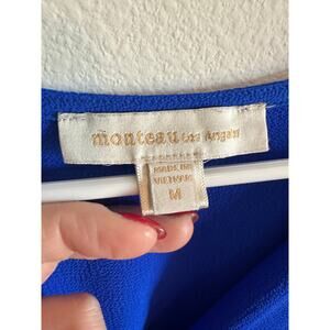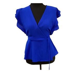Monteau Women's Medium Blue Faux Wrap Ruffle Short Sleeve V-Neck Blouse