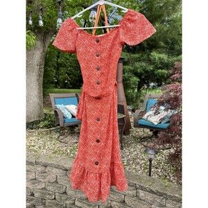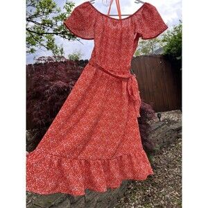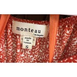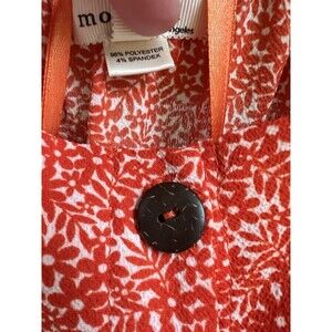 Monteau Womens S Red w/ White Lightweight Floral Dress Tie Back Button Front EUC