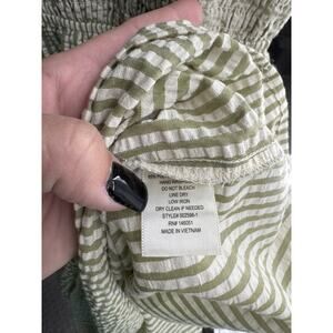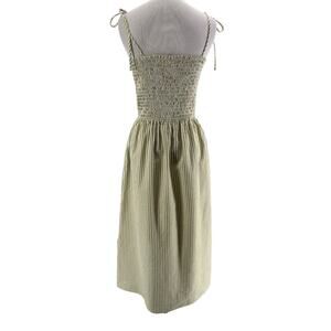 Monteau Women's Sage Green White Striped Smocked Midi Dress Size Medium