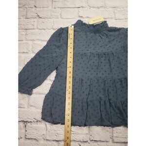 Monteau Womens Size Small Blue 3/4 Sleeve Swiss Dot Semi Sheer Blouse