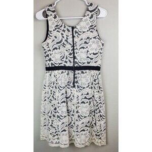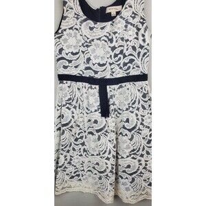 Monteau Women's Small Dress Black W/ White Lace Overlay