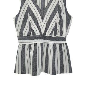 Monteau Womens Striped Sleeveless Peplum Top Size Large Black & White Pullover