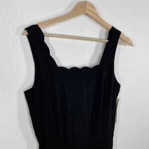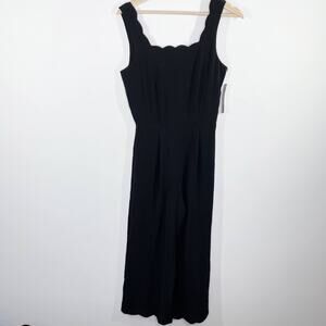 Black Scallop Trim Sleeveless Wide Leg Jumpsuit by Monteau