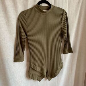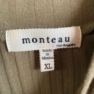 Monteau Womens XL Olive Green Knit Sweater Ribbed Quarter Sleeve Mock Neck