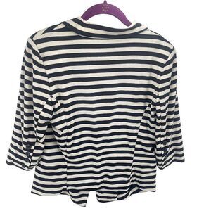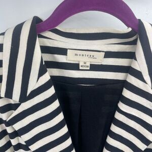 Monteau Women's Single Button Blazer Striped 3/4 Sleeve black white Medium