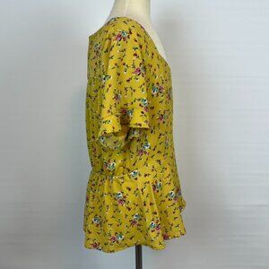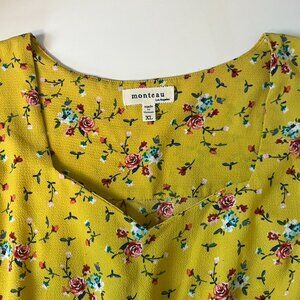 Monteau Yellow Floral Blouse Top Shirt ((size XL))