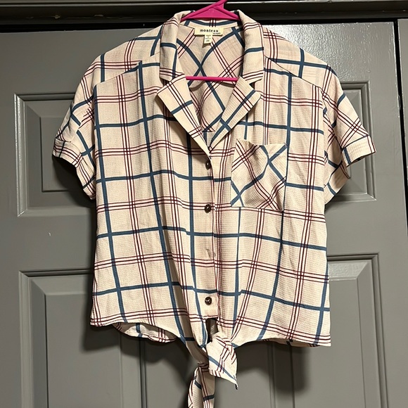 Blue and red button down
