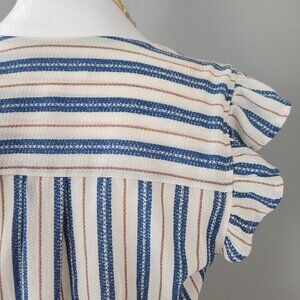 Monteau by Anthropologie Sleeveless Flutter Top Blue and White Stripes Size M