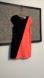 Monteau colorblock shift dress featuring black and coral orange in an angled separation. Slight cap sleeves. Button at back neck. No zipper. Heavy materials. No concerns noted, only tag is striked out with marker as shown in photo.