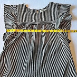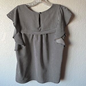 * Features: black and white striped flutter cap sleeve, lightweight top with pleated front and back. Boxy cut