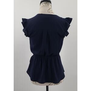 Monteau ladies ruffle cap sleeve faux wrap peplum top blue Size Small office