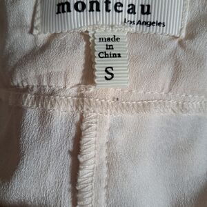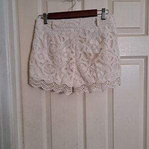 Monteau size small shorts outer shell is lacey/ embroidery bottom hem is crochet side to side measurements are 15" rise is 11" if you have any questions please message me bundle for bigger deals Bin A-53