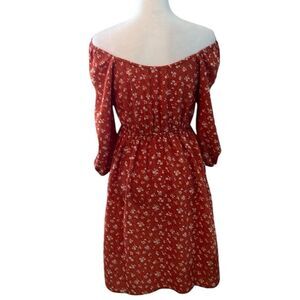 Beautiful brownish rust colored with cream flowers on/off shoulder dress great fall colors