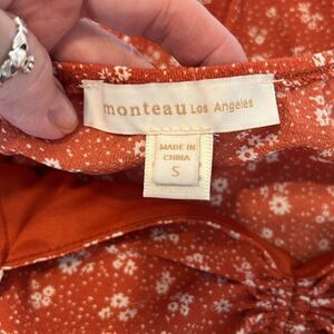 Monteau szS short sleeve elastic neckline empire waist gathered lined bodice EUC