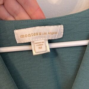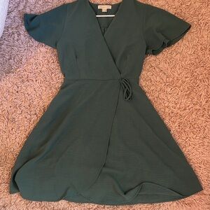 Super classic, chic blue green faux wrap Monteau dress with adorable flutter sleeves, size medium, good used condition, possible minor imperfections