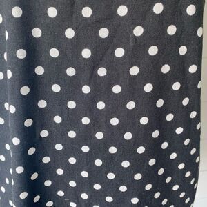 Black dress with white polka dots. Features thin straps for a sleek look. Size XSmall