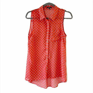 Monteau Sheer Red Sleeveless Button Top Blouse M