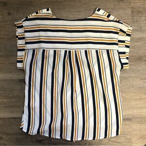 Monteau cute striped Summer Top, Woman’s, Size M, tie front, blue and mustard striped pattern