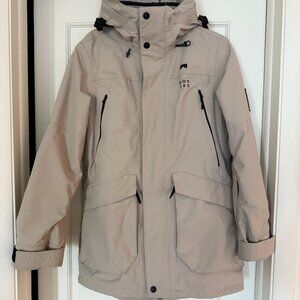 Barely used Montec Virago Snowboard Jacket in color sand, size small. This jacket is super warm and has a more oversized fit. If you want more fitted, I would size down/oversized, true to size.