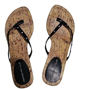 Montego Bay Club Black Wedge Sandals Women’s 8.5 Cork Heel Flip Flop Slides
