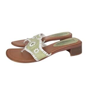 Montego Bay Club Block Heel Sandals Leather Medallion Thong Heels Lime Green 6