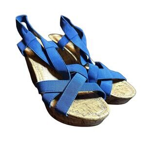 Montego Bay Club Blue Cork Wedge Platform Sandals - Size 7.5
